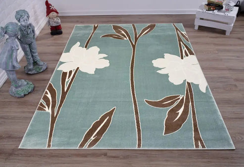 Air Force Blue Floral Area Rug – 5’3″ x 7’7″