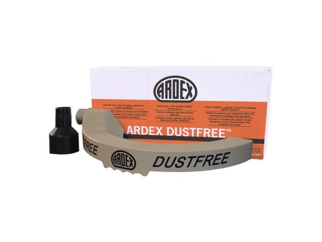 When placed on an ARDEX T-10 Mixing Barrel and connected to a standard shop vacuum, the ARDEX DUSTFREE™ will help eliminate dust.
