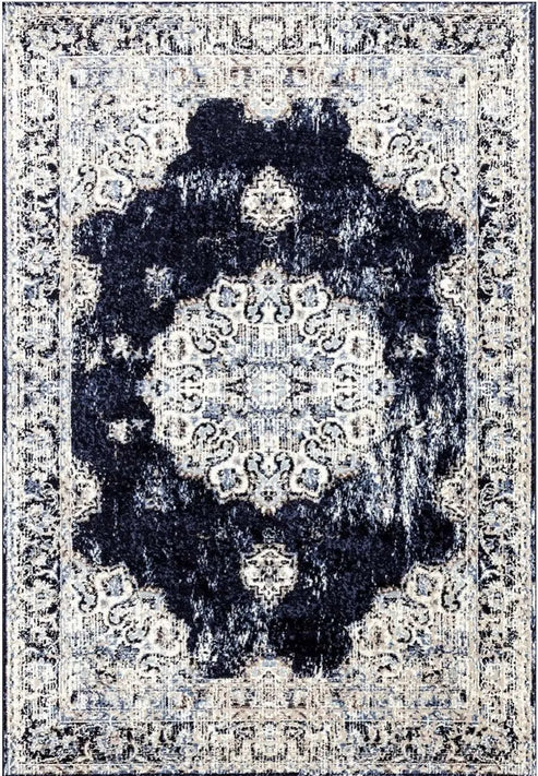 Our Anatolia home elegant new collection is crafted with traditional/ vintage designs in contemporary colors. You can enjoy this timeless beauty in any part of your home to add a touch of vintage and color. Machine-woven from 100% polypropylene, this synthetic rug’s pile is embellished with a faded Persian-inspired, floral/ geometric motif in a beige/ivory and navy blue color palette. Available in different sizes to suit the requirements of your modern home.