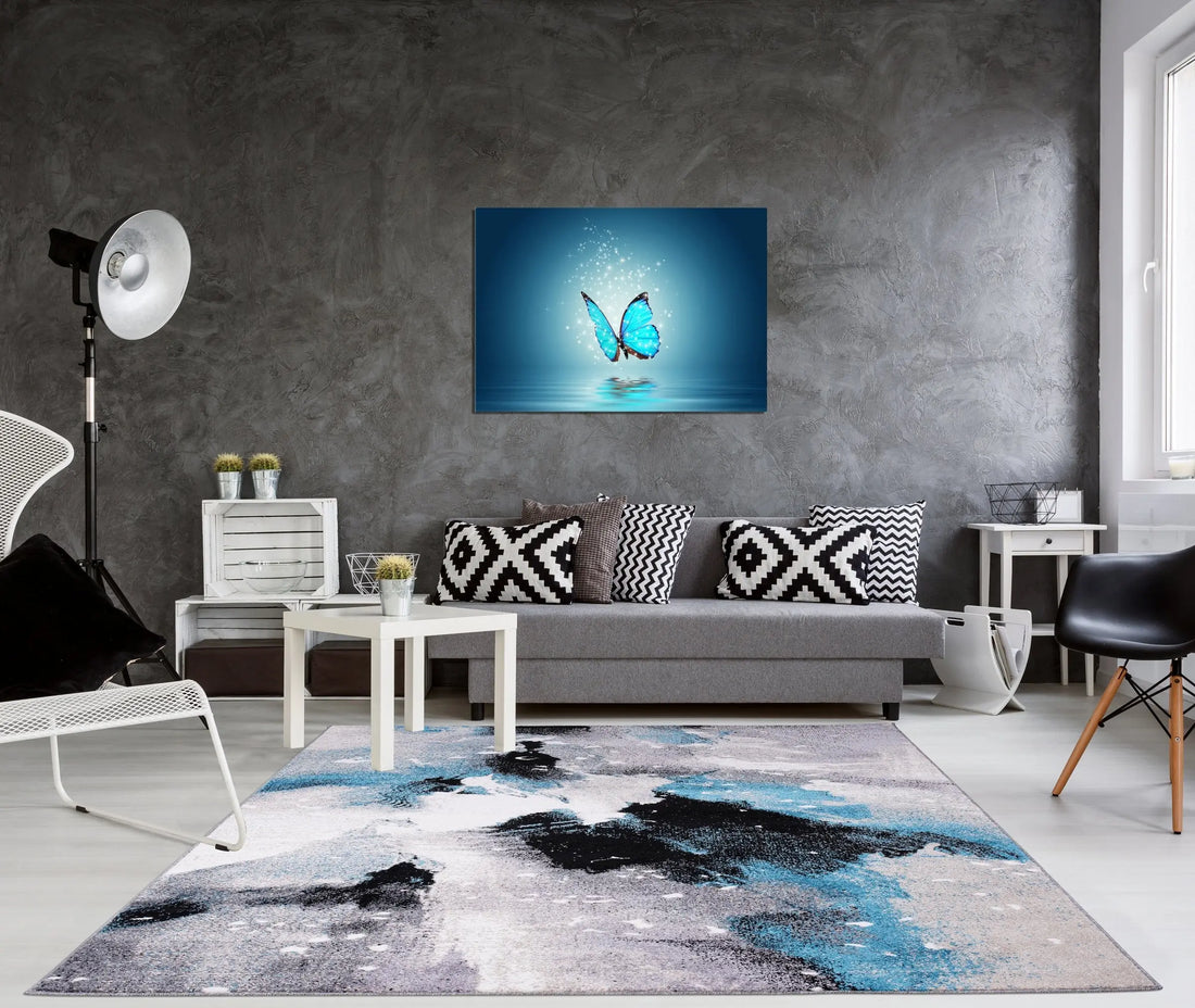 Want to add anchor piece in living room decor, ready to stand up to high foot traffic in the entryway and take on occasional spills under the kitchen table, polypropylene rugs are ideal anchors for any mess-prone area of your abode. This grey black blue pattern rug is made of high quality synthetic fibers and medium pile height with distress finish. Its hues of blue may seem understated, but this piece stands out in any space because of distress look pattern in contrast colors. Add rug pad underneath for extra cushioning and to prevent shifting or sliding.
