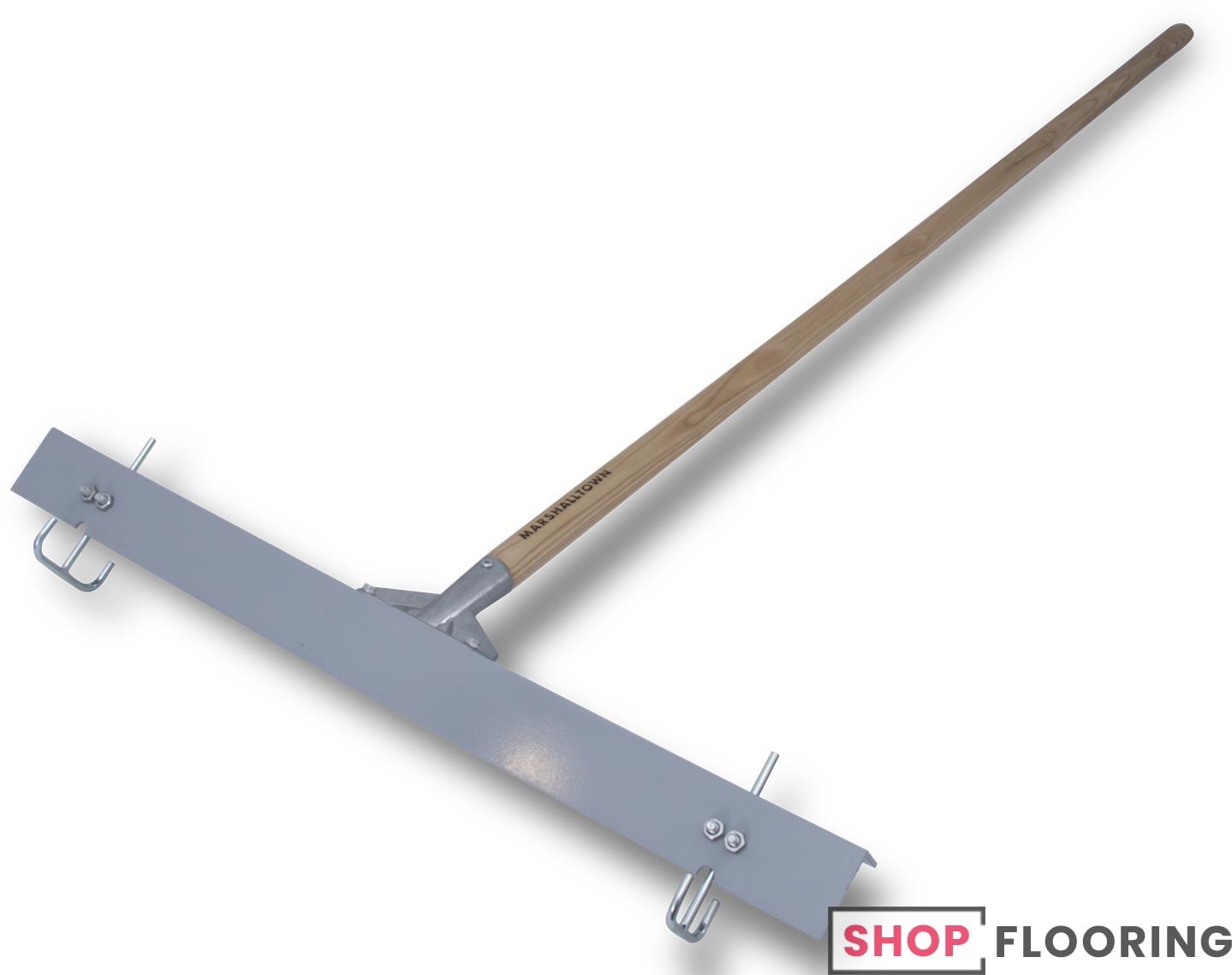 The MARSHALLTOWN Gauge Rakes come in a 24″ or 36″ head that are both lightweight and constructed of powder-coated aluminum. These products can be adjusted up to 2″ for uniform coating of surfaces. Each comes with a 60″ tampered ash handle. Made in the USA with Global Materials.