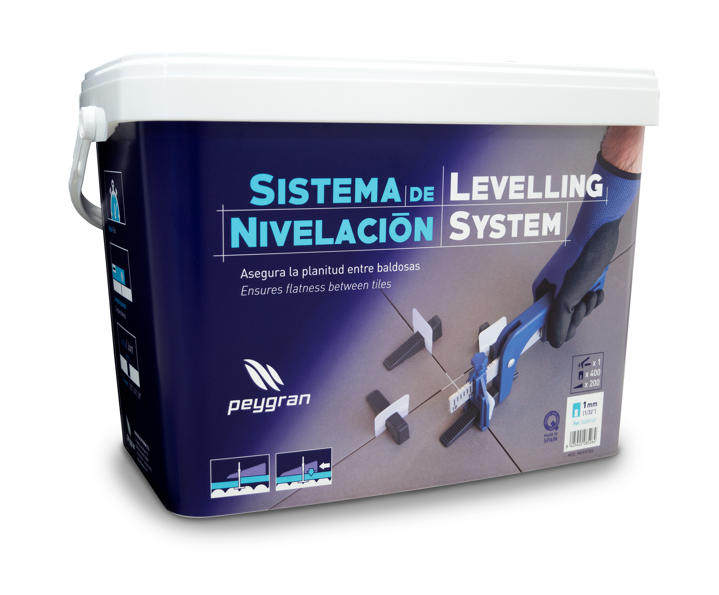 Peygran leveling system Super Kit is a perfect way to begin using Peygran Leveling System. The kit contans 400 clips, 200 wedges and pliers. All in a handy, reusable bucket.