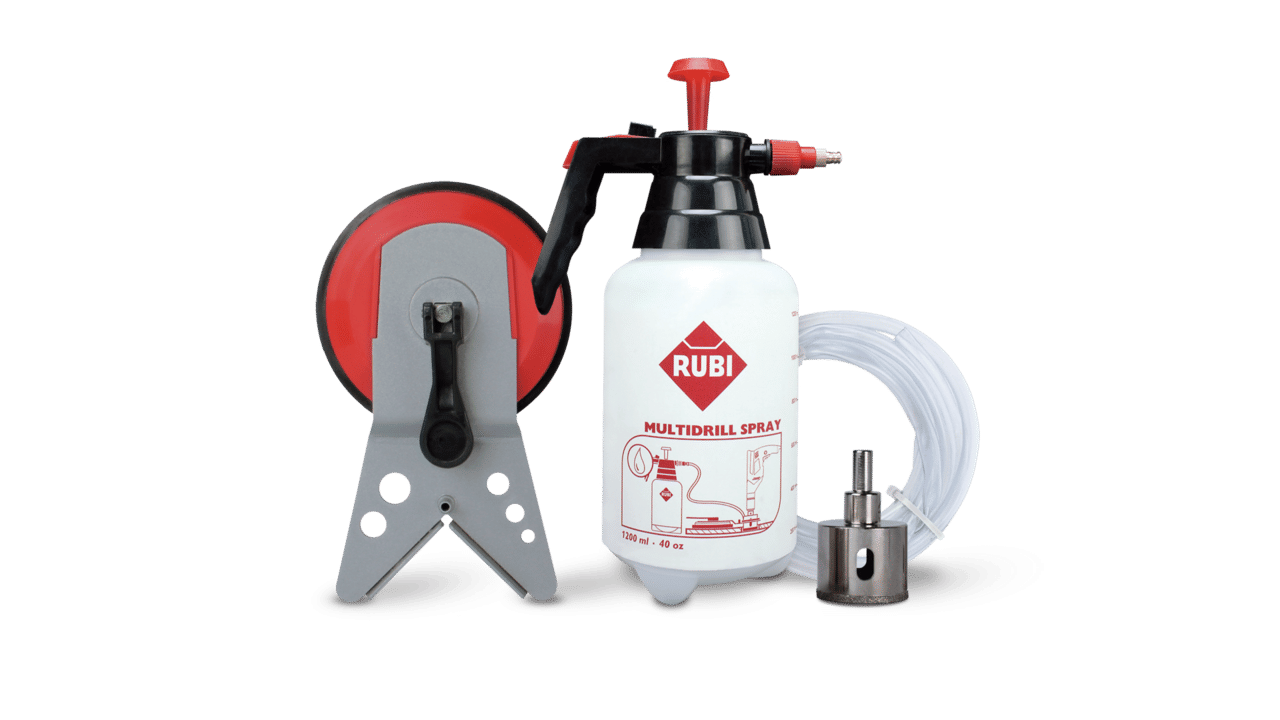 RUBI offers the building professional different product kits with configurations tailored to the most common situations. For smaller diameters (6-12 mm), RUBI offers the practical EASYGRES kit consisting of: one or more drill bits (depending on the model), the practical EASYGRES guide, the corresponding centring bushings (depending on the number of bits contained in the kit) and fastening adhesives.